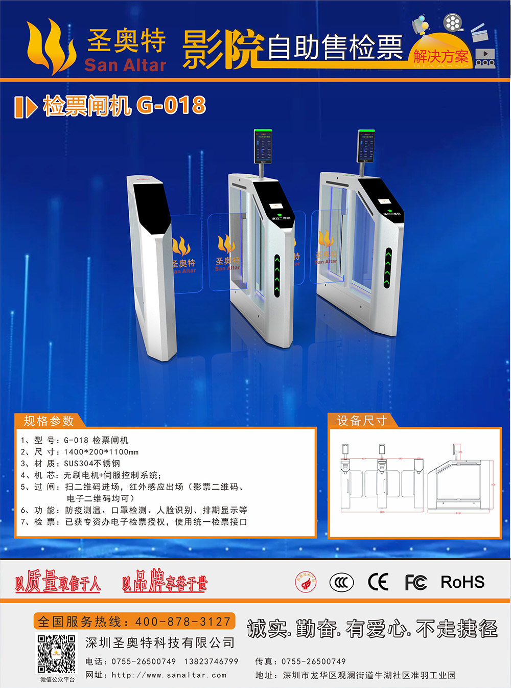 圣奧特G-018 人臉識(shí)別閘機(jī) 檢票閘機(jī)