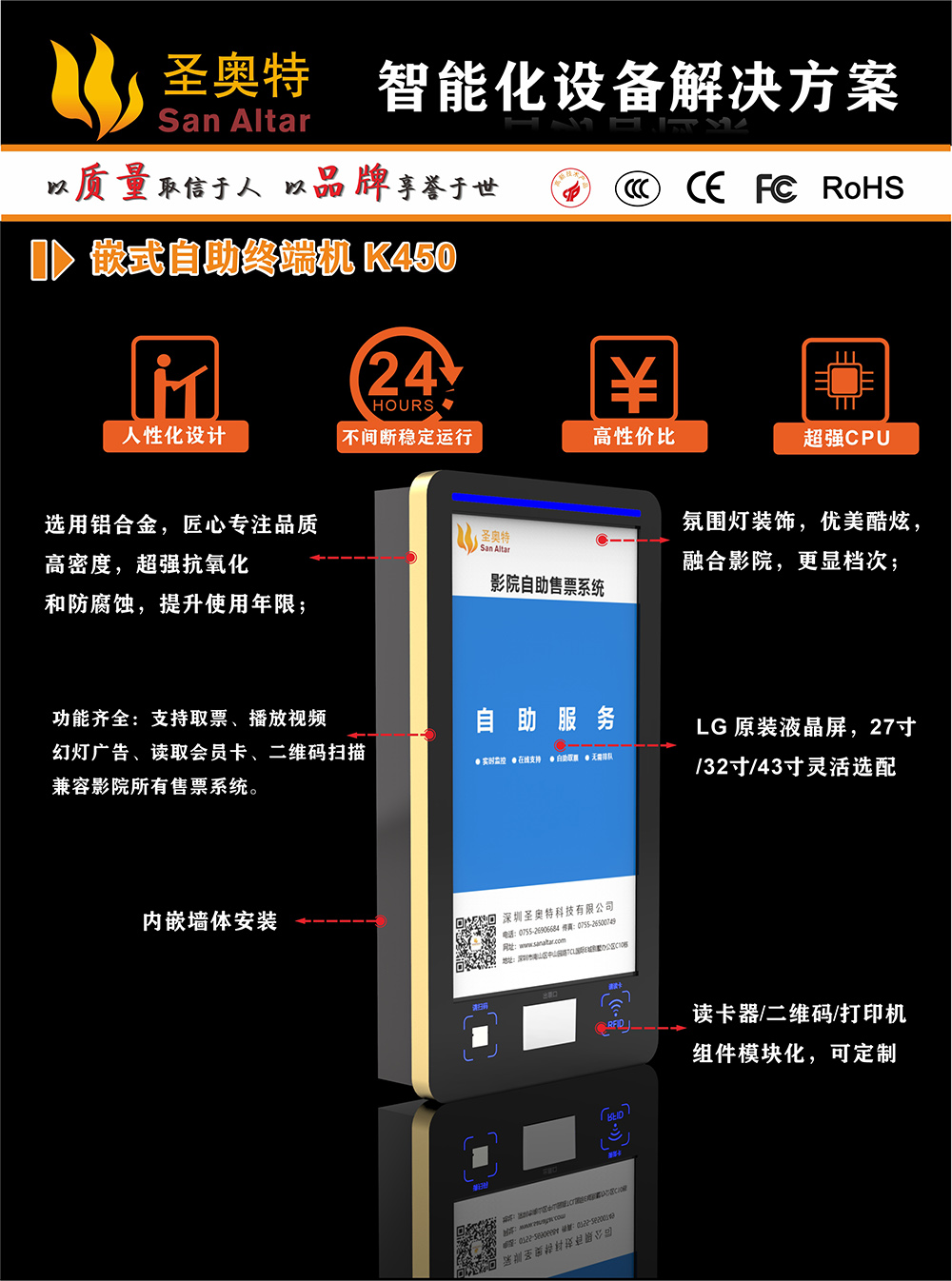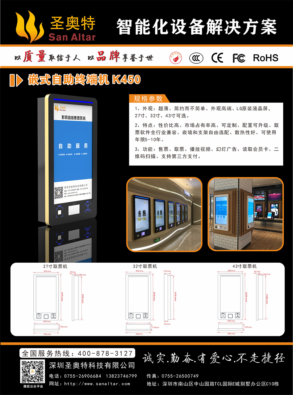 K450系列自助終端機(jī) 廣泛應(yīng)用于:智慧影院 智慧景區(qū) 智慧場(chǎng)館 智慧醫(yī)院等